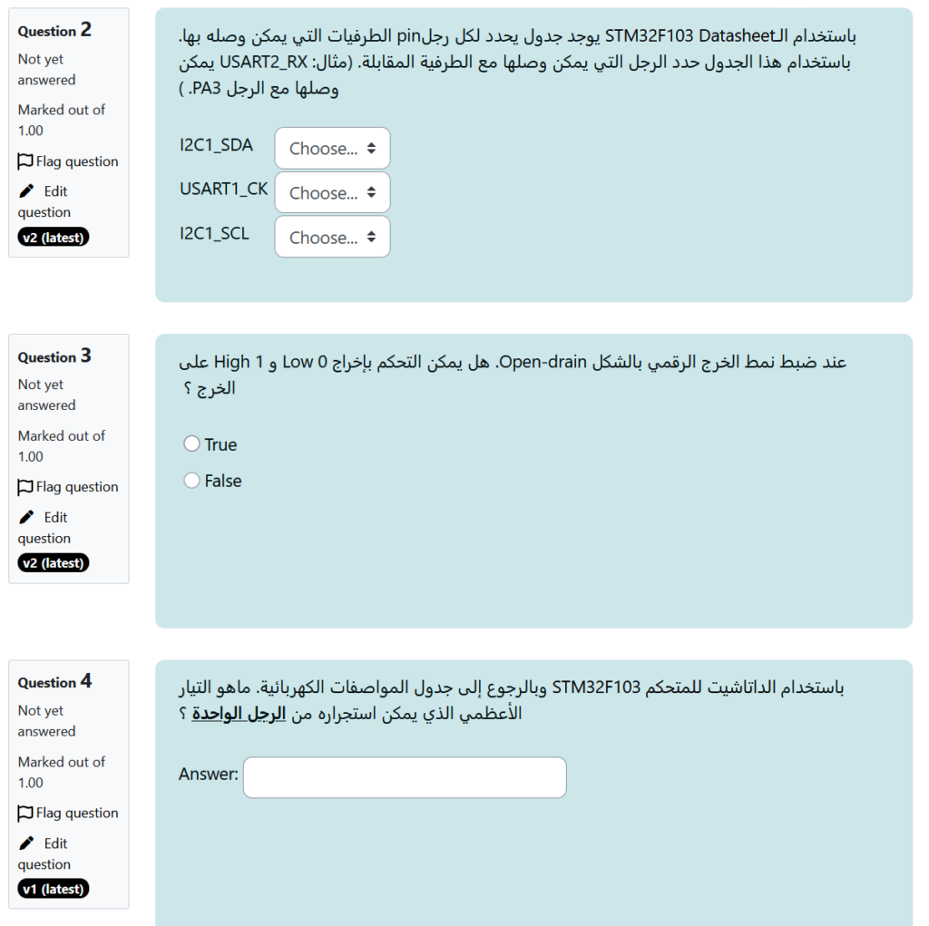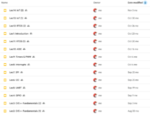 عندما تأكدت من إسناد تدريس الجزء النظري الأكبر من المادة لي، لم يكن لدي بعد أي محتوى قد حضرته سابقًا. كل ما كنت أعلمه بشكل مسبق أن المادة ليس لها منهاج ثابت. كان للمادة مفردات في توصيف مواد القسم ولكن للأسف التوصيف قديم ومختصر وغير شامل. كما أني قررت أن ألتزم في المقرر باستخدام متحكم STM32F103 كونه هو المتحكم المستخدم في المخبر في السنوات السابقة، ولم أود أن أضع الطلاب في حالة تناقض بين المخبر والنظري باختيار متحكم آخر.